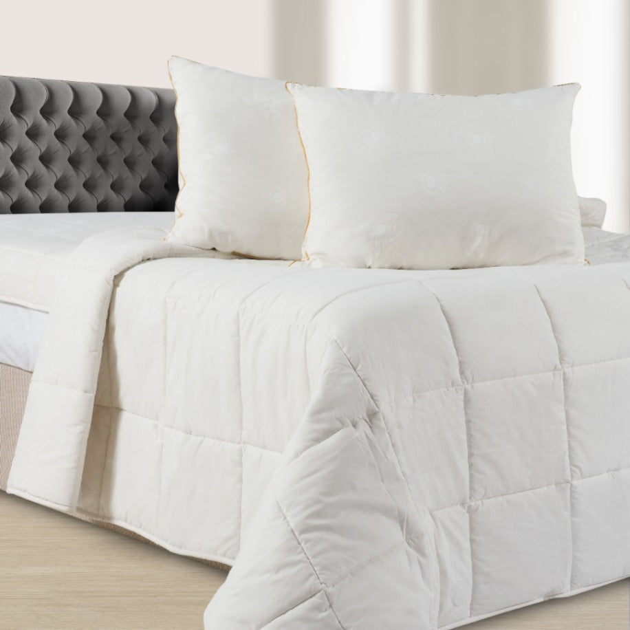 Decke und Kissen sind perfekt aufeinander abgestimmt – für ein ausgeglichenes Schlafklima ohne Schwitzen oder Frieren.