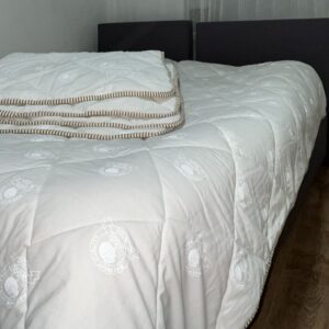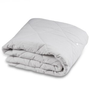 „Ich habe die 200×200 cm Decke im Standard-Stoff. Die Decke hält richtig schön warm, obwohl sie so dünn ist – man merkt sie kaum und trotzdem friert man nie!