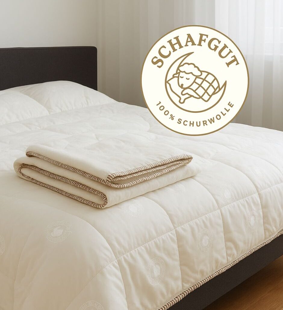 Die Kombination aus dichter Baumwolle und reiner Merino-Schurwolle bietet ein einzigartig angenehmes Schlafklima.