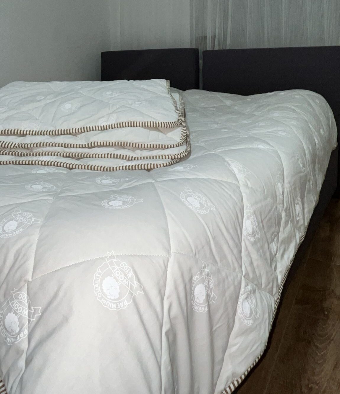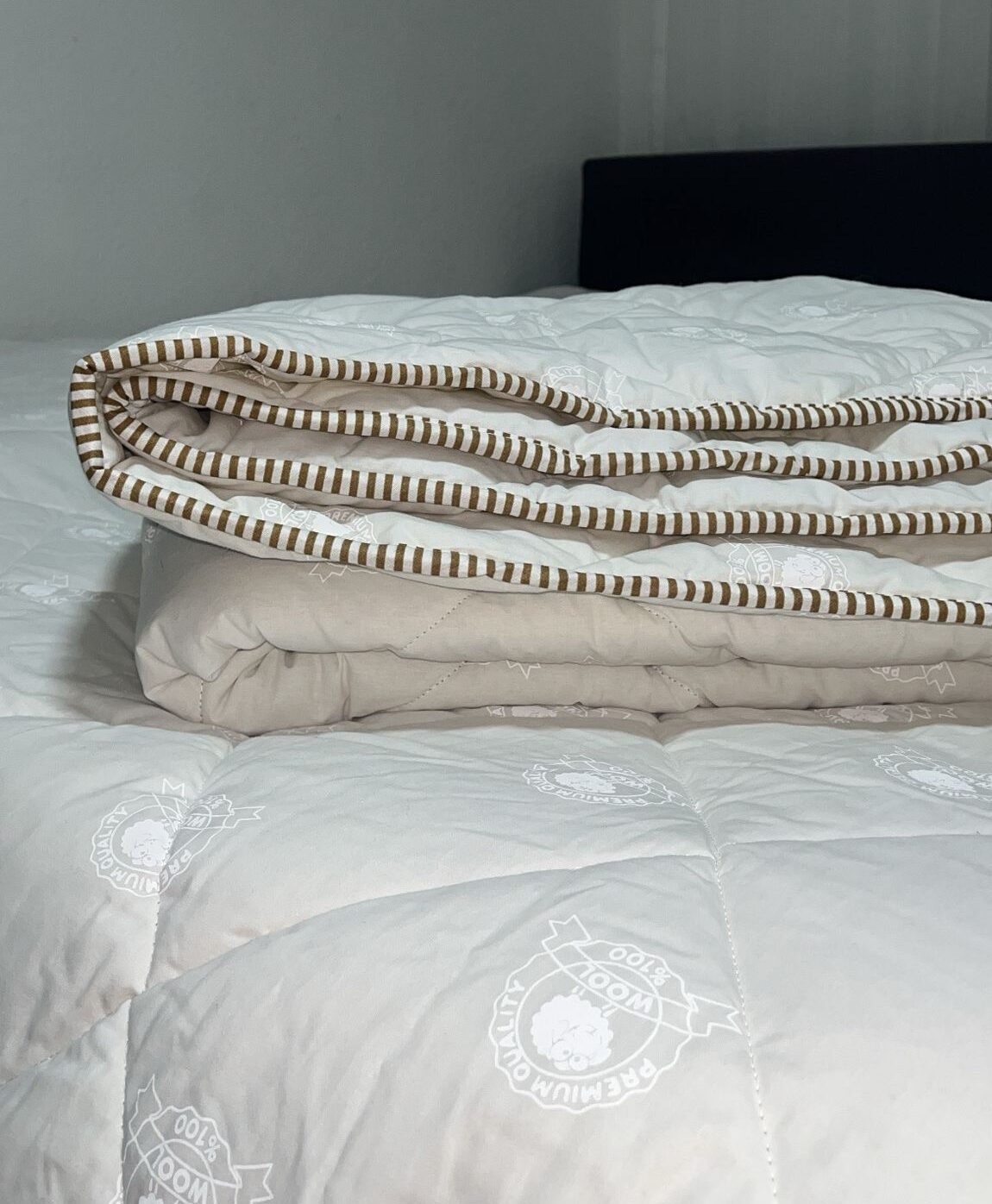 Luxuriöse 4-Jahreszeiten-Decke aus 100 % Merino-Schurwolle und dicht gewebter Baumwolle (Premium-Stoff). Besonders hochwertig, atmungsaktiv und langlebig.